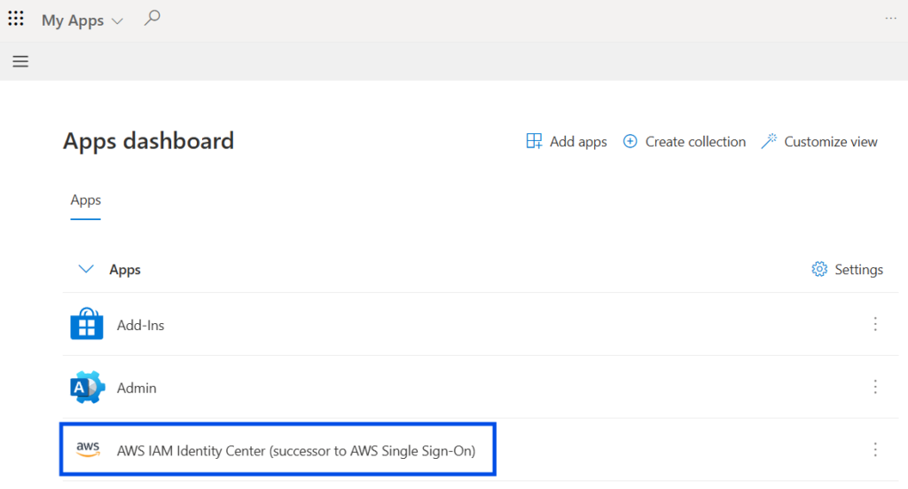 I went to the company’s Entra Portal, signed in using an admin account, and added the “AWS IAM Identity Center” Enterprise application.